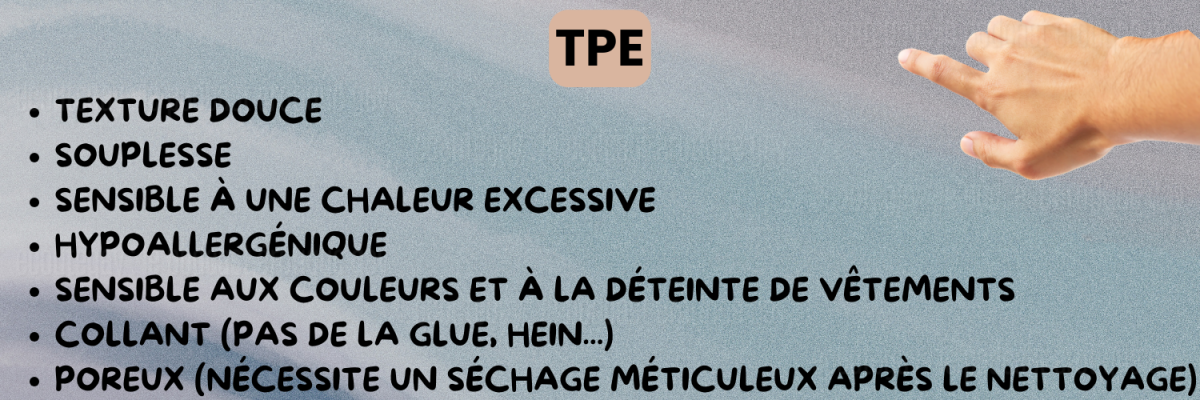 - Hypoallergénique, douceur moindre du TPE
